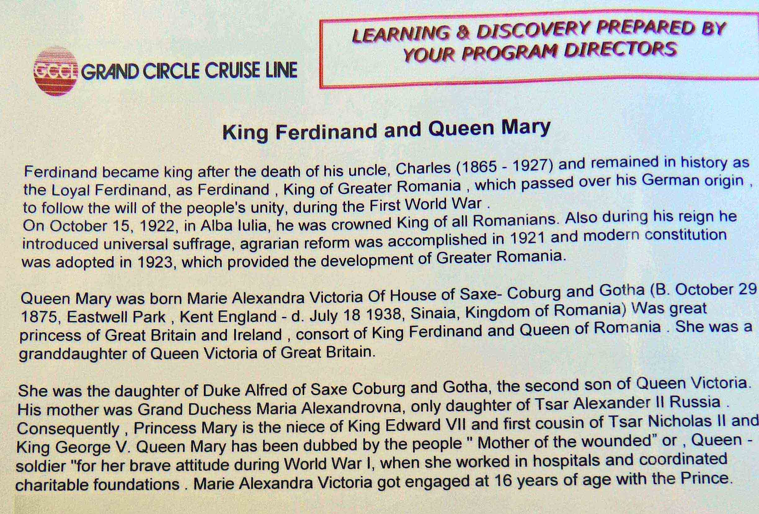 ROMANIA TRIP TO BRUN BRUN CASTLE QUEEN MARY VLAD TEPES PELE'S CASTLE PELE'S INTERIORS BRASOV N. CEAUSESCU CONSTANTA UP THE DANUBE ARBANASSI VIDIN SERBIA VUKOVAR HUNGARY BUDAPEST BRATISLOVA FUN IN PRAGUE PRAGUE REVISITED CRUISEMATES MENUS & RECIPES