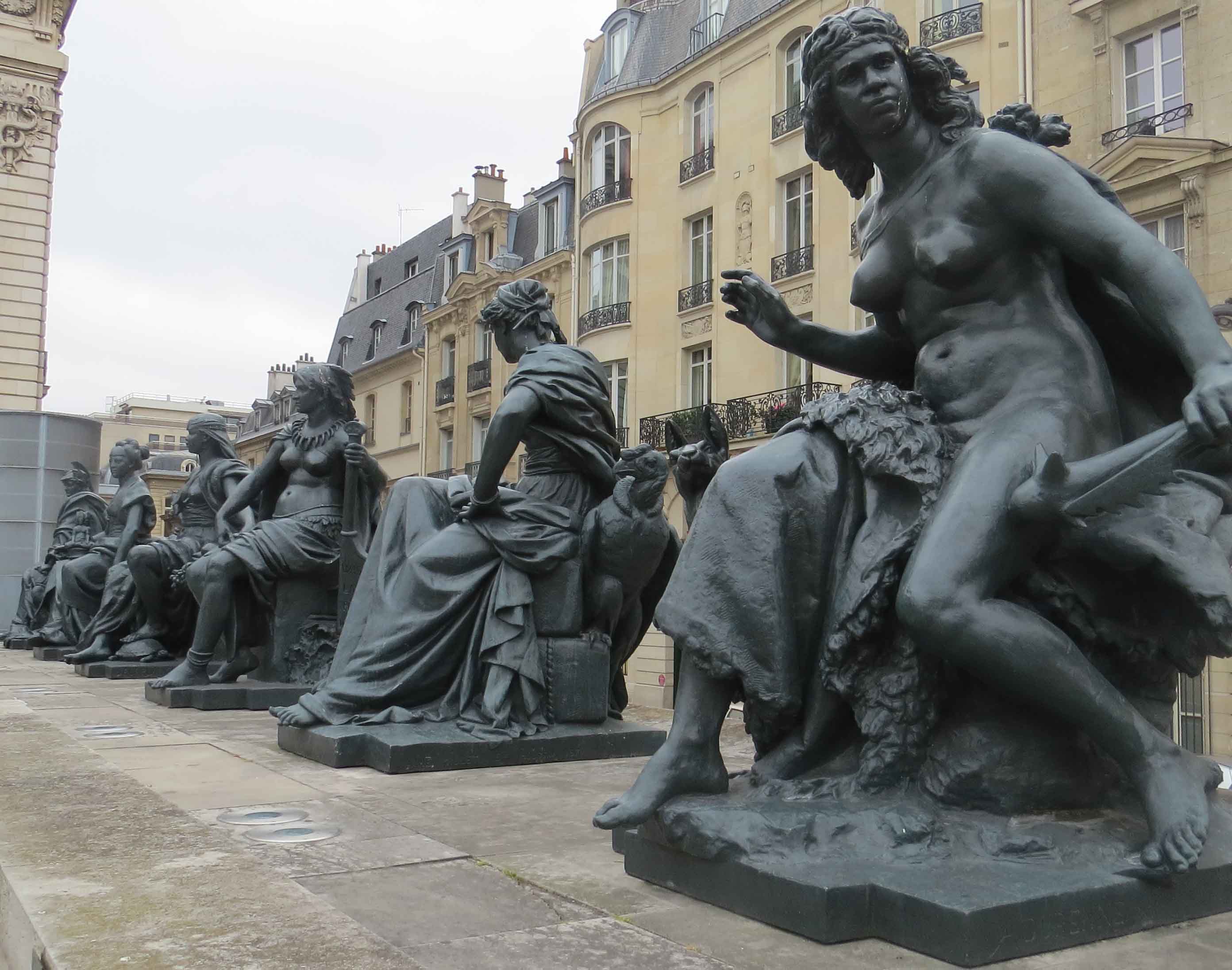 June 18, 2015 Not a great sleep... by the time the party and wild driving was over the Advil had worn off and my legs hurt! We woke up Katie. She had showered and washed her hair the night before so she just had to put on what she had laid out for the day. When I went outside it was raining and so she changed everything she was wearing because the pants she was going to wear matched too close to her coat and that might make people on the street think she was wearing a pant suit!! We activated our two day pass and easily entered d'Orsay museum. Wow what a wonder!! There were so many that I ran out my iPad battery taking pictures: Manat, Monet, Sisley, Degas, Renoir, Gauguin , Cezzanne, and more! The statuary were incredible. After four hours we met on the floor with the huge old clock and beautiful statues. From there we walked across the bridge to The Louvre. Our pass let us cut the line which went on forever. We ate lunch.. Michael and I shared a sandwich and Lays potato chips with roasted chicken flavor. We started going though the Louvre. My back started cramping and well into the tour the cramps were REALLY bad! I didn't want to ruin our tour so I sat down when I could and pushed against a cold wall I could find. We stayed until it was closing and went back to the hotel. After taking pain killer I brought from home and slept a few hours, I felt so much better I joined everyone to find a dinner place. We found a multi-cultural type of deli with tables upstairs with pictures of food that looked yummy. Michael and I chose chicken tandoori pitas with yogurt sauce and fries... yum!!! Katie had a cheese and tomato crepe and then shared a Nutella crepe with her grandmother, but that ended up to be just one last bite. Nobody wanted ice cream but Michael and I, but when we saw the FLAVORS, expensive and no coco, we just went to the market and each bought an M bar! Delicious! Now we are back in the room. I will take another pain pill and hope to sleep until morning when we hit the floor a runnin'. Good night to you and this magnificent city! Grove