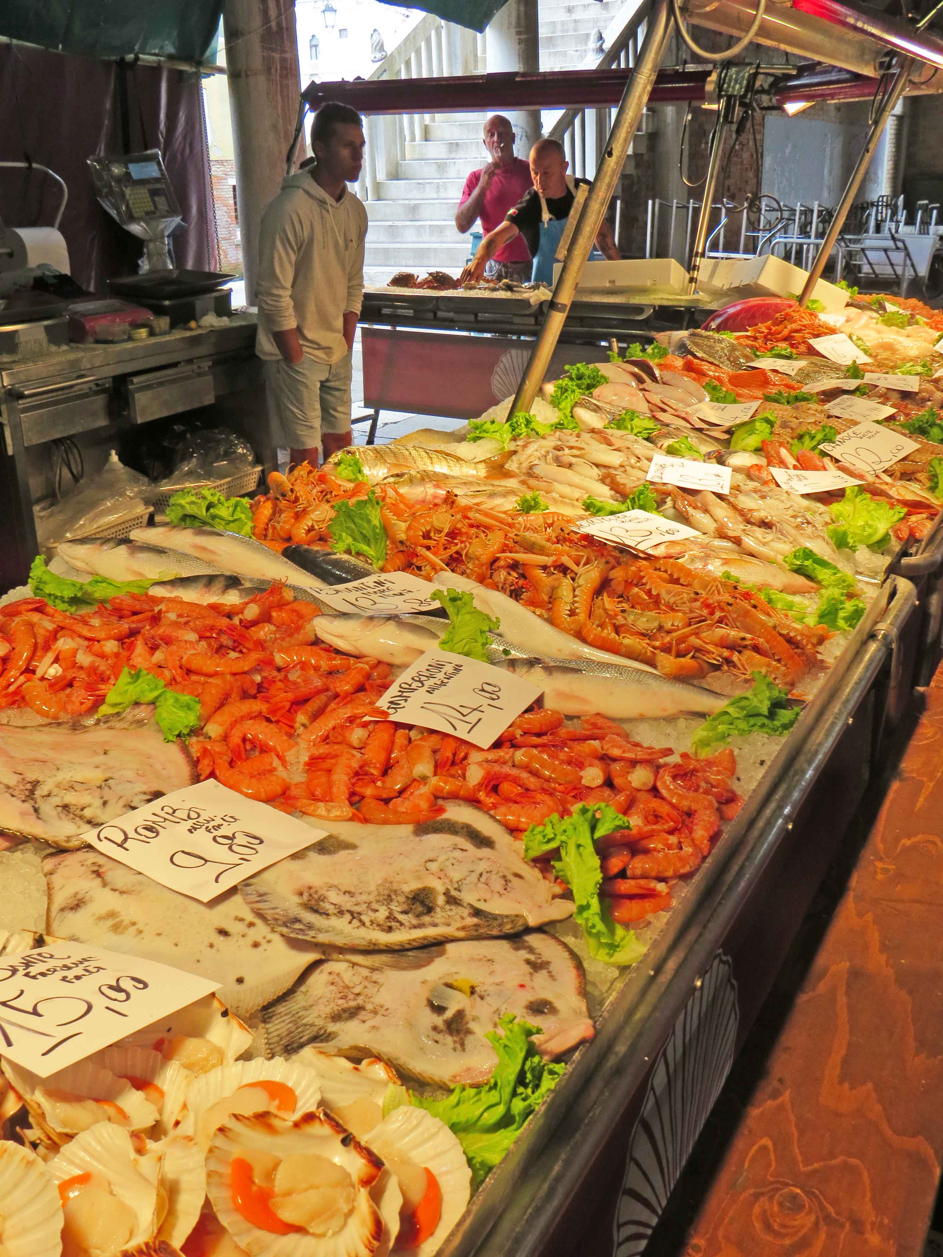 June 23, 2015 Another day in Antigua and loving it! We took off this morning to see the fish market as it was closed on Sunday and Monday. It is covered but open, so not as messy as others, and they display the fish in such beautiful ways; almost an art. I always give Michael a bad time about taking pictures, but in this city if I was carrying the camera we would have twice as many. It is going to be so very hard to limit them on the blog! With a stroll through the flower market and seeing the beautiful fruits and veggies all so fresh and fragrant, we boarded the water taxi (we have unlimited travel) and took off to go to the Doge's palace. That was such a good idea as by the time we were almost done the hoards of Japanese and Cruise Boat groups were here. When we went outside we couldn't believe it! The square that was almost empty last night was completely full! There were lines at least 300 yards long at both the church of San Marco and the bell tower. I have never seen so many tourists In one place.. even at the Eiffel Tower. Because Venice is an island and not so spread out, one notices this more. I would never see Venice off a cruise ship. It just doesn't do it justice! I ran out in the crowd while Michael was snapping some pictures of the crowd from San Marco and we played "Find Waldo". The only reason he could find me is I'm wearing my big orange shirt I threw in at the last minute... the one I got at the Salvation Market in Chico. My blue shoes and beige capris that Janet bought me for my birthday have been my go-to Venice unit. When we checked the weather on-line before we left this month's was cold and rainy everywhere, so sadly, most of the clothes I brought were too heavy. We have stopped at a wonderful little cafe just off one of the water taxi stops that had fabulous soupa di fungi (mushroom soup), extremely wonderful bathrooms, cold beer and cold Coke light and Wi-fi. Life could be no better! We are going to take a short walk to see the church at Santa Maria Gloriosa de Frari! Of course it will be "Glorious" as it has priceless canvases on the walls by Titian, Bellini and Canova. I'll write more later; my stomach is full now to fill the eyes! Until later, Grove