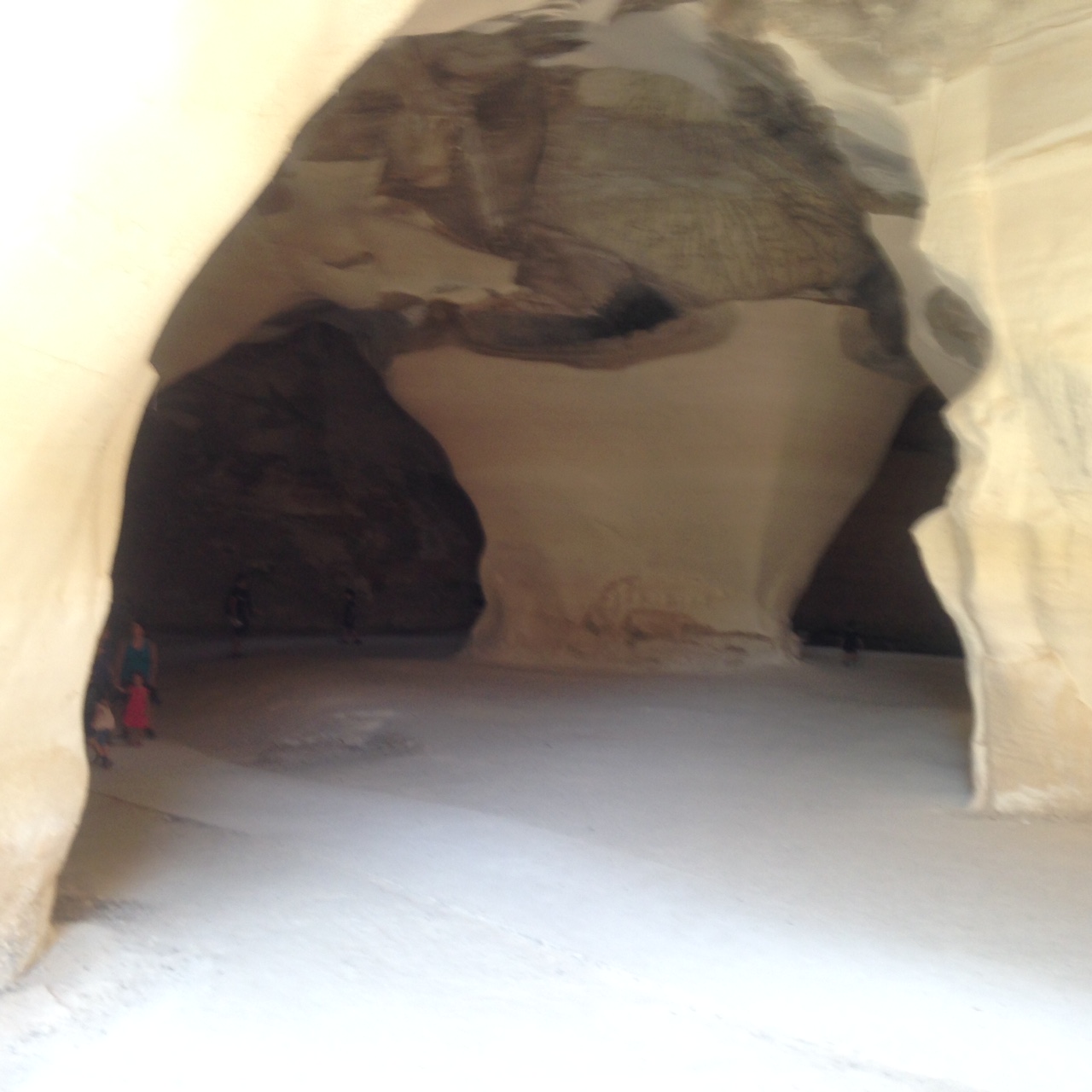 I ask how the trees were watered and she explained much is under drip irrigation from water cleaned from our toilets and sink and is used only for agriculture. The water does not go through the desalinization plant for agriculture or forested area. The water is simply filtered...all water is used. In the area we visited a thick layer of limestone covers a huge area of chalk. The chalk was mined out leaving caves. The first cave Annie discouraged me to go as it was st EPA and I lose air but at the last minute I took the challenge and went every where but the first deep little cave. I was there at the top to take pictures as they exited the deep little cave. We saw a cistern and a structure that had been built on the floor to show what the house would be like on our way to the bus.