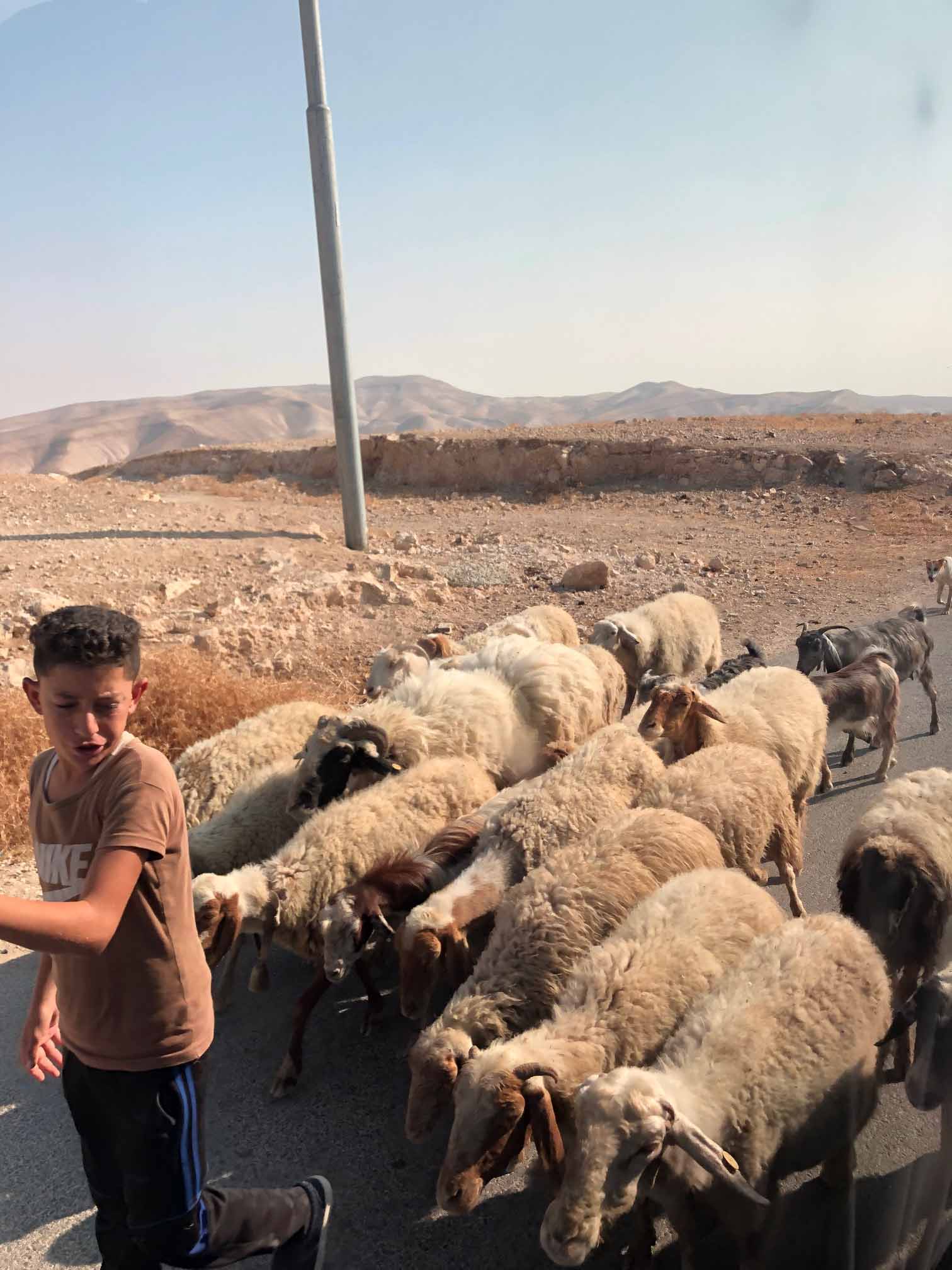 Left: Young Bedouin with his sheep on the way to St. Saba. Right: Others walk to view the monastery before us.