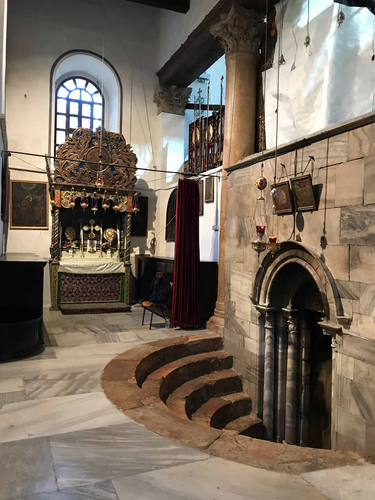 Left: The star marks theplace where Christ was born. Right: Backway through the Armenian Church