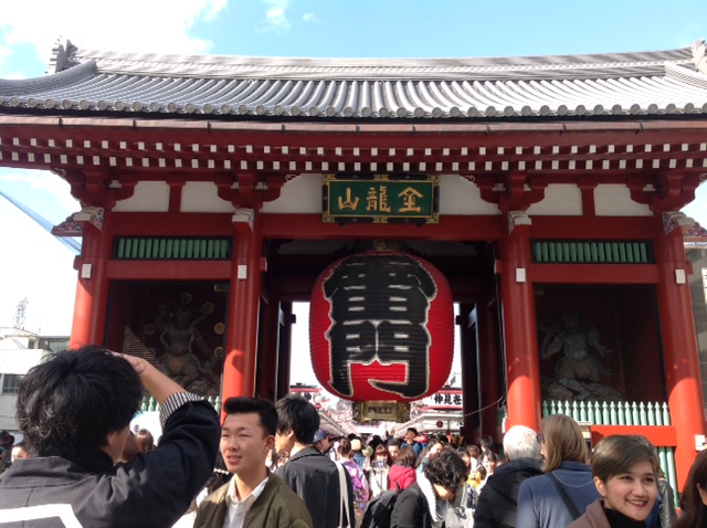 I had shrimp and veggie tempura that I loved and miso soup that I didn't. Michael had that but added egg and eel tempura. I tasted the eel and it was good. Carol had much the same but with a smelt (smelt fishy!) Full as a tick we started to the big Shrine, SENSO-JI TEMPLE. It is quite impressive but to get to it you must walk the gauntlet of trinket shops and souvenirs . That was fun as I was able to pick up a few things for family. Our suitcases were already bulging from too many clothes ( I am wearing the same thing two days in a row which I never used to do, and of course my new kimono. Anything I bring home to family will be little and hopefully inexpensive... there isn't much of that in Japan. The shrine and grounds were beautiful and since it is Cherry Blossom time there were any young girls and some not so young in kimono. I took many pictures and Michael took mega. It was quite a sight. I even got pictures of two little girls in Kimonos. The weeping cherry blossom trees were my favorite and I got my picture taken under one.