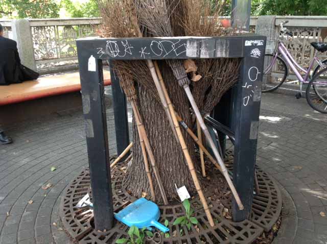 These are to sweep the leaves. No garbage or trash containers around. YOU MAKE TRASH. You take trash!