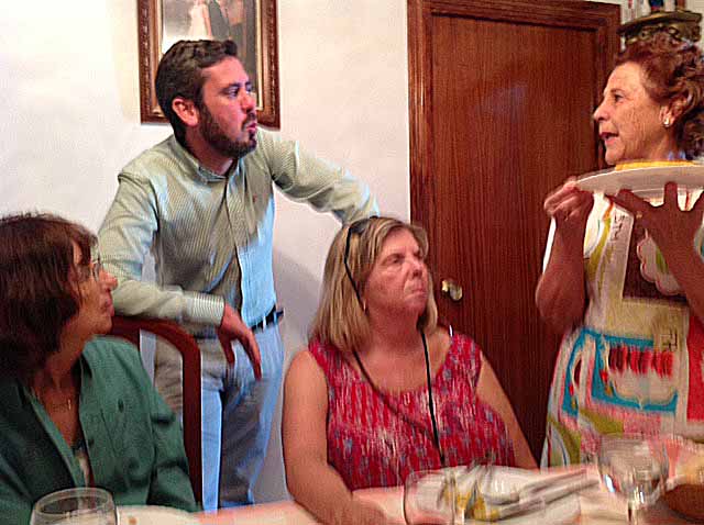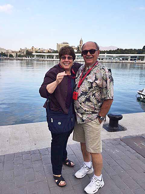 Journal No. 12 Another day, another adventure. You may notice that some journals are longer than others. It isn't because we did less, it is because I happen to be on the bus which has wifi, and it is easy to write, and I have people around me remembering the things I would ordinarily forget. We didn't leave Torremolinos until nine o'clock, so we had plenty of time to sleep, shower and check out the huge breakfast buffet. We are going to Malaga, and because it is the home of our guide, Victor, he will be our local guide. He has another business online, where he takes people on tours of Malaga, since that is where he was born and now lives. He took us to the building where Picasso was born. There is a statue of Picasso sitting on a bench, and I got a picture of me giving him a kiss on the cheek. The big surprise for us was the appearance of his father. He was a darling man, and Michael took pictures; maybe I can get friends to email me some. That was a highlight for me and being there by Picasso and of course seeing Victor's papa.