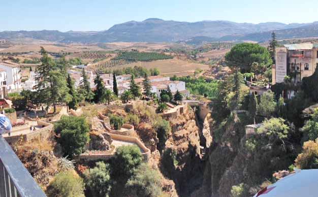 Journal No. 13 Up and out of Torremolinos by 8:00, on our way to Rondo. Jerry and Janet had been there before, and said it was very beautiful. When they were there, everything was green, as there had been a rain. Still, all the rolling hills were pretty with harvested grain in between. Our first stop was where they raise the bulls for the bullfights. There are two hundred hectares, or four hundred acres where they raise the bulls, the females, the working horses, the picador horses, etc. I got off the bus and took a picture of the practice ring where they used to find the mean mama cows to be the ones they mate with the mean bulls. I stopped to go to the restroom . The line in the women's room was long, so some of us went into the men's. I must have left my iPhone there. We took a quick walk in the practice ring, to see how the vets take care of the mean cows and bulls. We got in the bus and drove to the first paddock where some of the horses were. That is when I realized my phone was gone. I searched the bus and my purse and then told Victor. He immediately called back but it was nowhere to be found. We changed the password as I didn't remember it and Victor was afraid if we waited too long, the battery would be dead. While Victor worked on that, Tony from Taiwan called my phone. It rang, but nobody answered. Victor left messages on it to call his phone.... no luck! That pretty well ruined my day. For the entire tour of the place it was yada, yada, bull, yada, yada, iPhone, yada, yada, no artificial insemination, yada, yada, look again in my purse. Victor called again, and one of my fellow travelers called my phone again and it rang, but I think I have it on vibrate. Victor called where the bathroom is and nobody could find it. :-(,, It has pretty well taken the wind out of my sails. There will be only yada, yada, Rondo, yada, yada, gorge, yada, yada, shopping, yada, yada, McDonalds for the bulk of this journal. I am sure Leona will have her take from Vic as he was jazzed about the geology here. You won't get anything from Joan this time, as she is not a friend of bullfighting stuff......of course, putting that mildly. So for Journal 13 it's all yada, yada. Could 13 have been a warning? At least this one is not so long! Grove